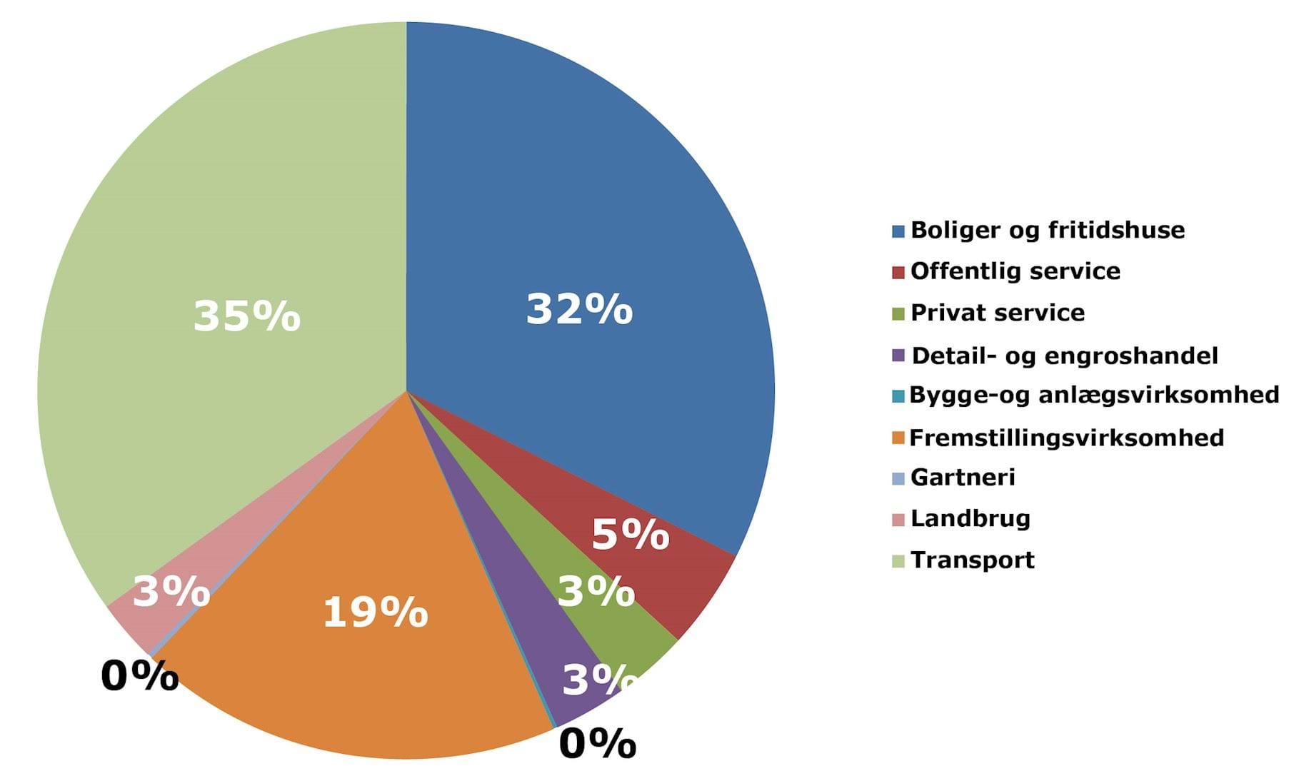 Endelig går 35 % af det samlede energiforbrug i Horsens Kommune i 2017 til transportområdet. Sammen med kategorien boliger og fritidshuse er det den største forbruger af energi.